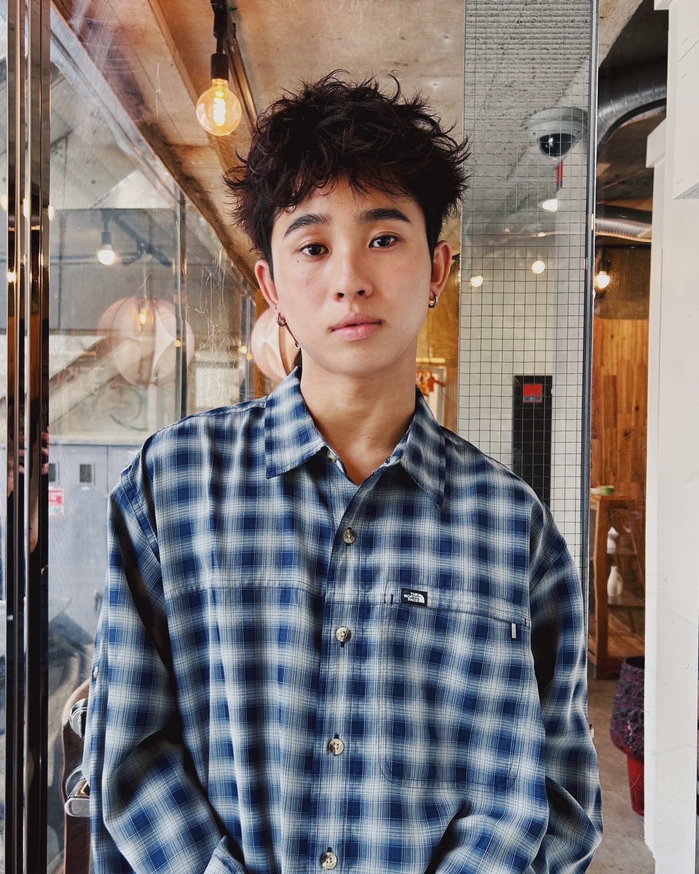 髪全体にニュアンスパーマを入れて、ドライ後に軽くスタイリングするだけ。