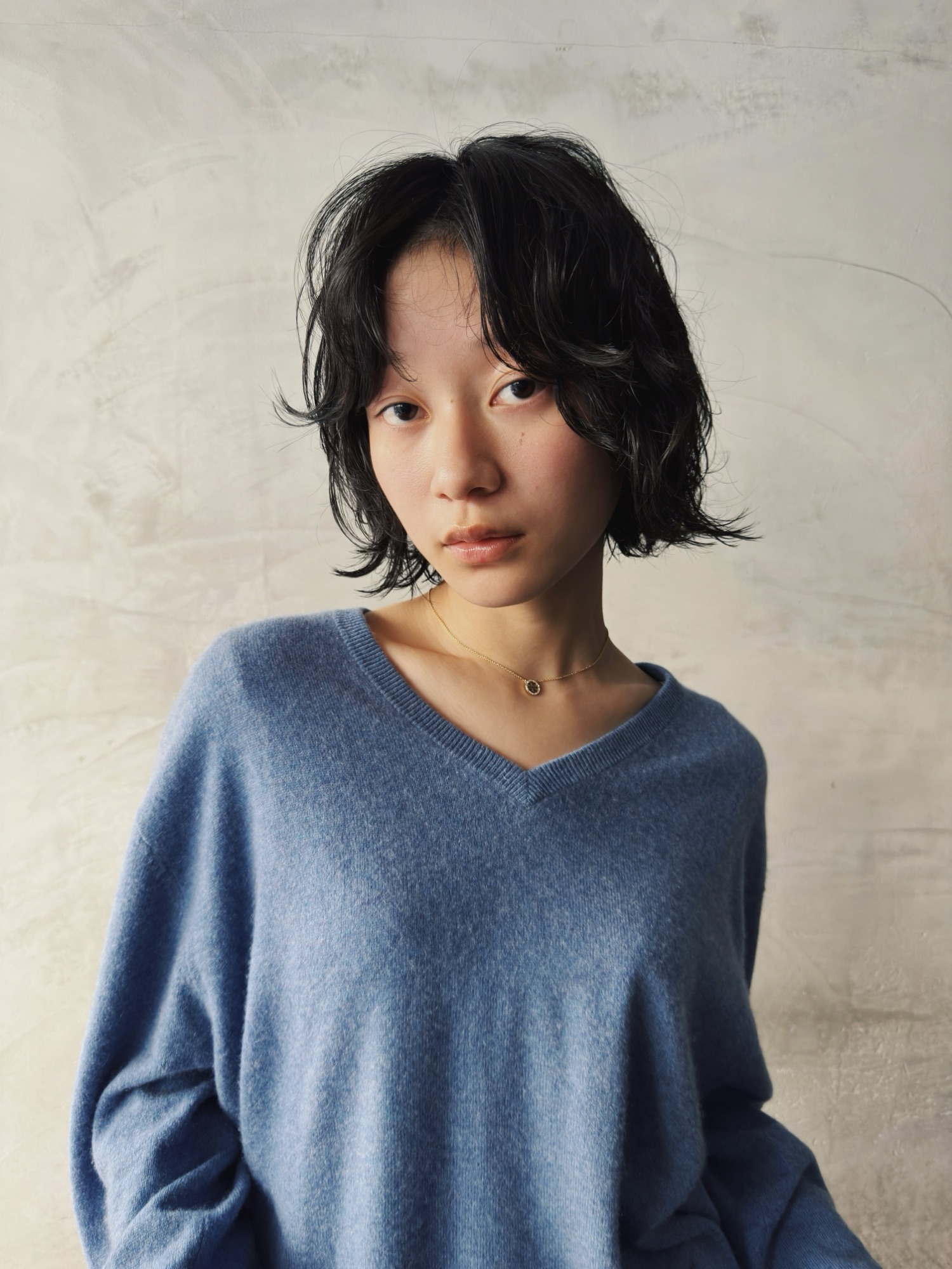 あえて“巻きすぎない”ナチュラルなカール感で、まるで元からのクセ毛のような雰囲気に。